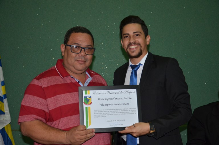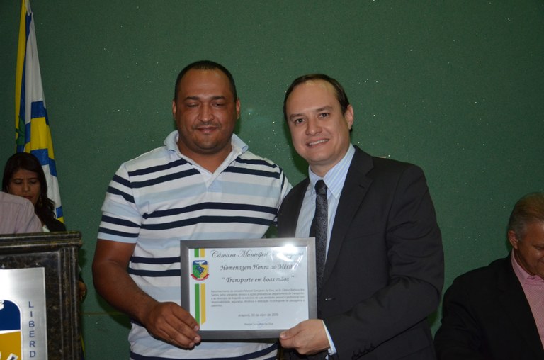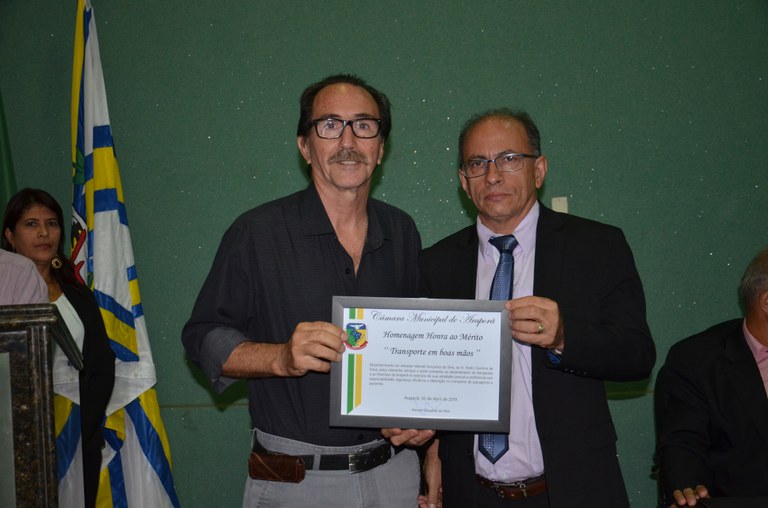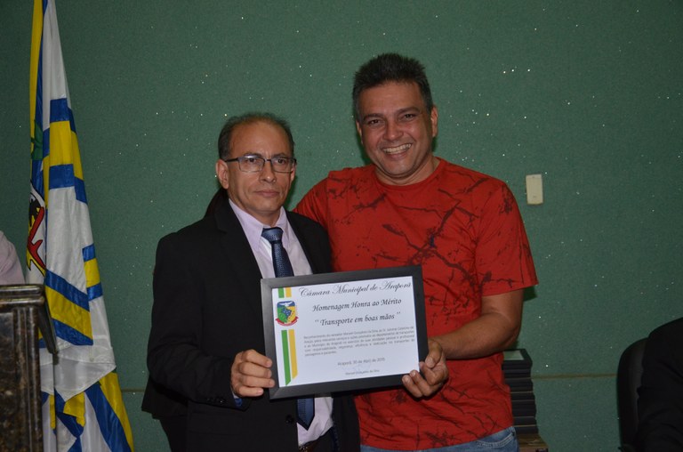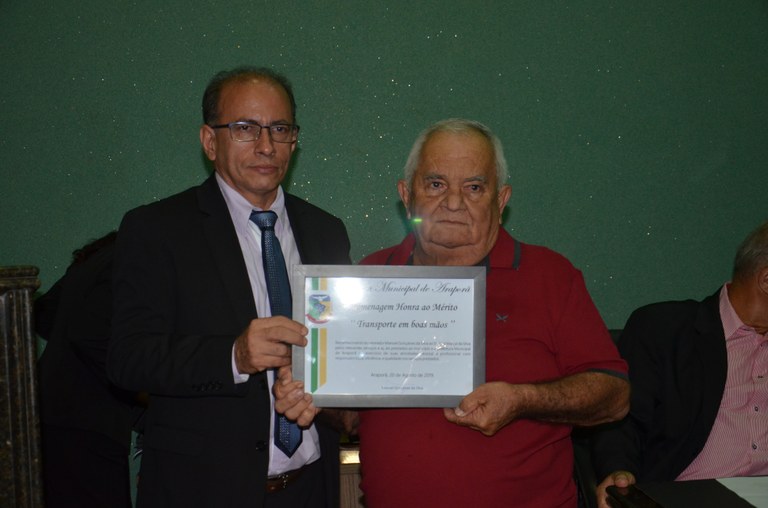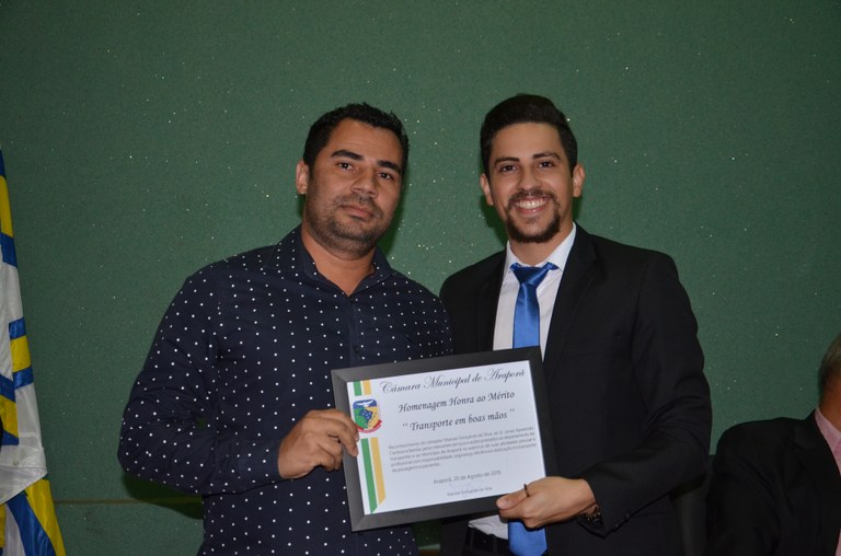 Você está aqui: Página Inicial / Sobre a Câmara / Galeria de Fotos / 2019 / AGOSTO/2019 / Entrega de Diploma de Mérito Denominado "TRANSPORTE EM BOAS MÃOS” 21/08/2019