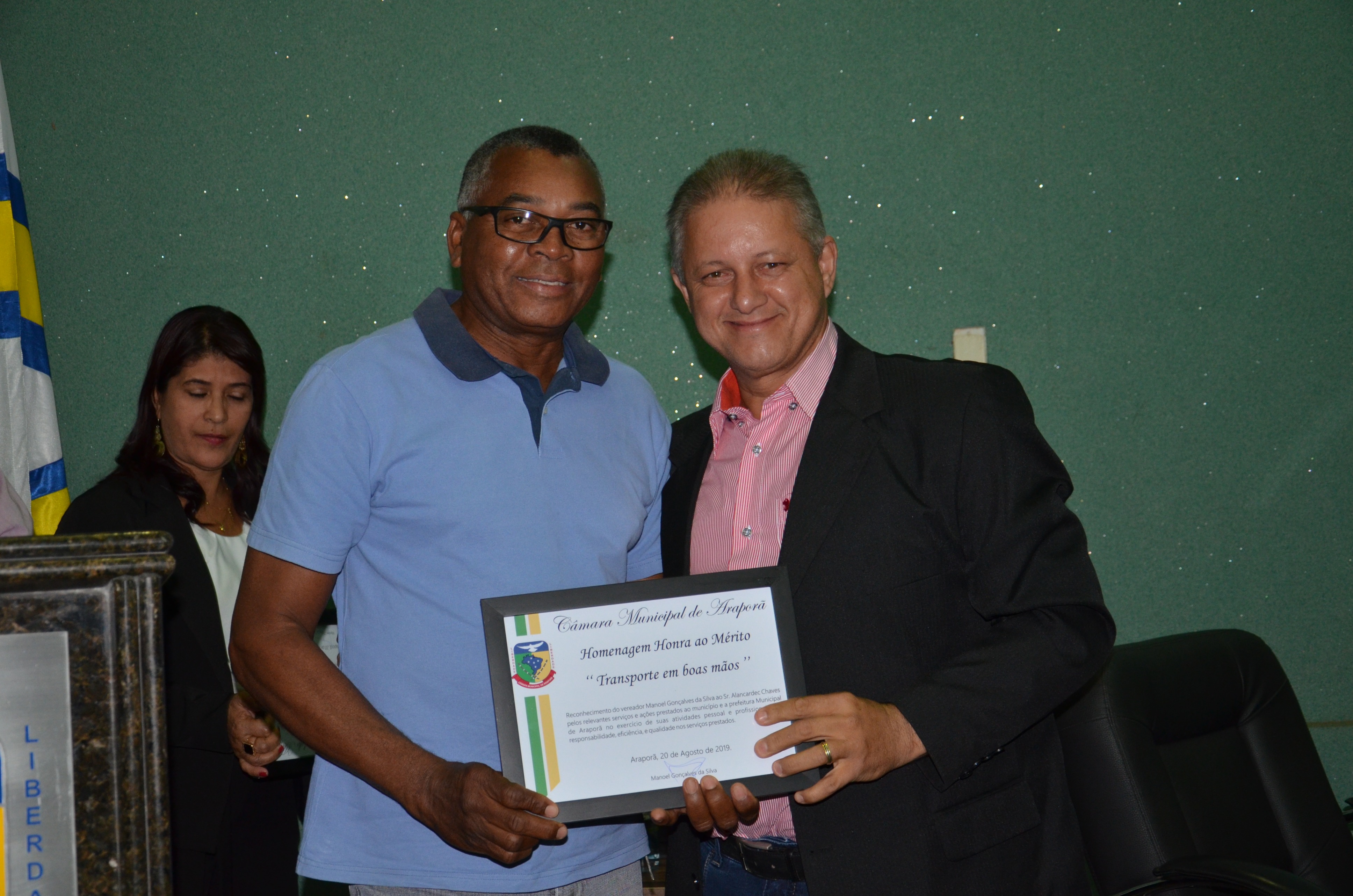 Entrega de Diploma de Mérito Denominado "TRANSPORTE EM BOAS MÃOS” 21/08/2019
