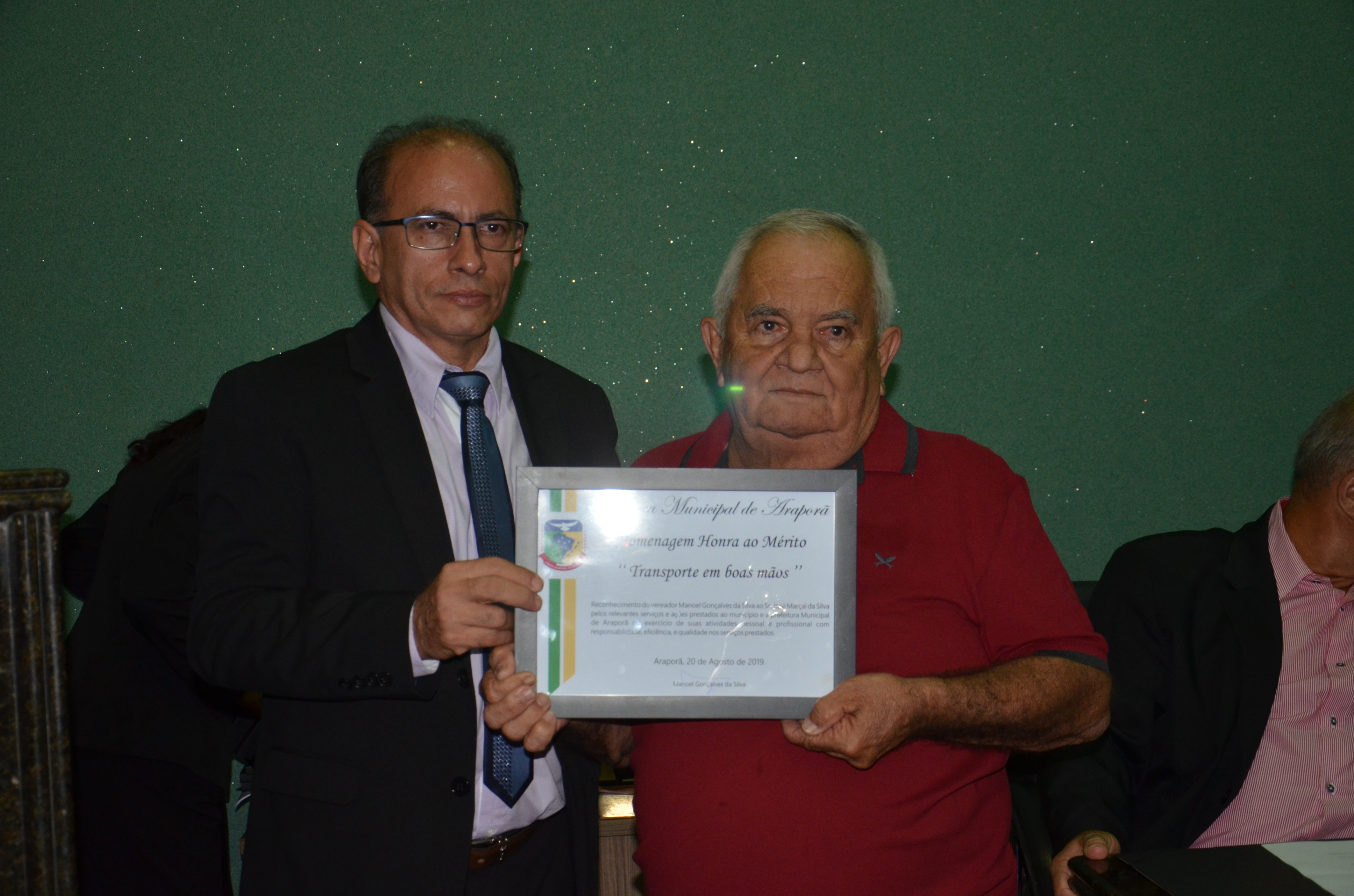 Entrega de Diploma de Mérito Denominado "TRANSPORTE EM BOAS MÃOS” 21/08/2019
