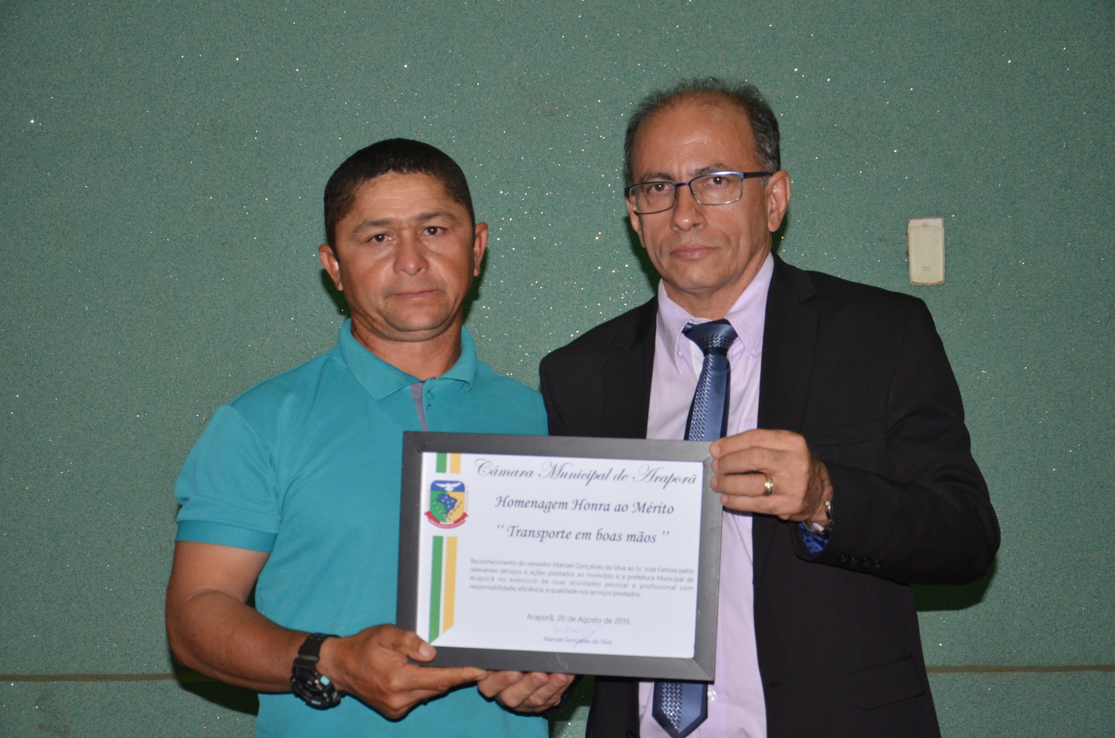 Entrega de Diploma de Mérito Denominado "TRANSPORTE EM BOAS MÃOS” 21/08/2019