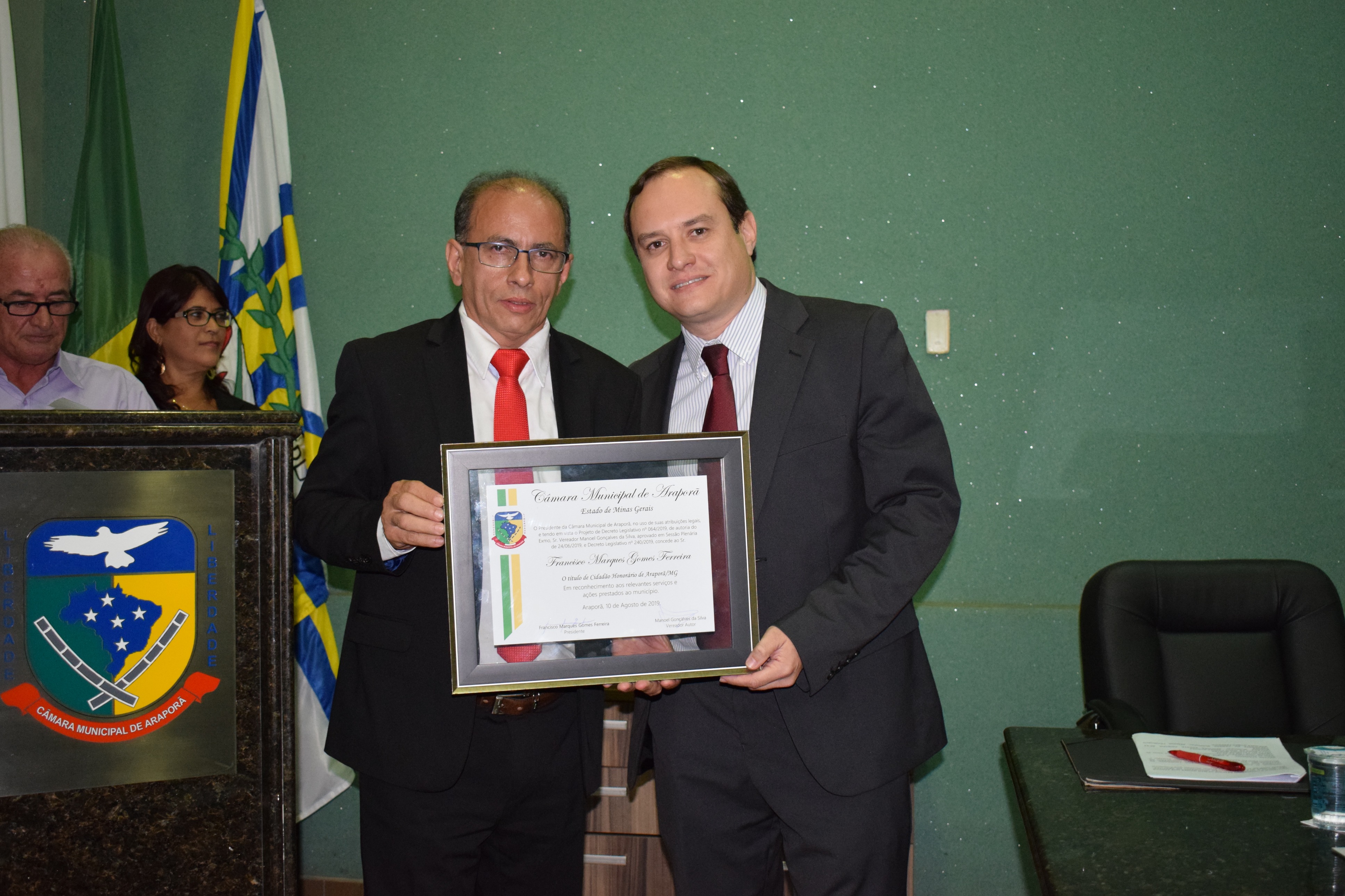 Entrega de Título Cidadão Honorário de Araporã-MG em 19/08/2019