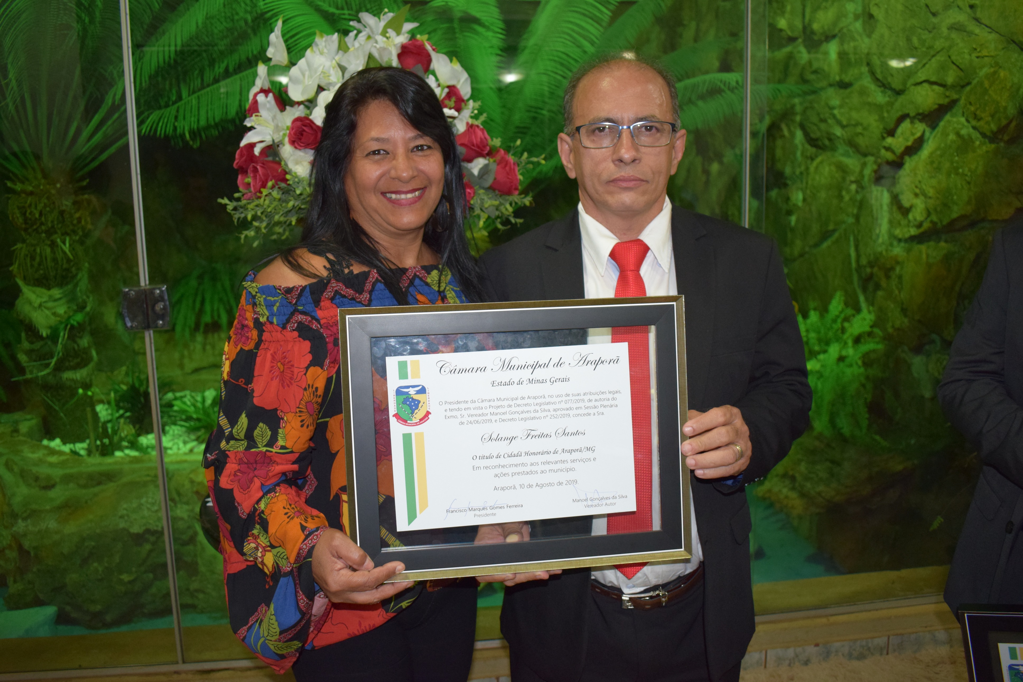 Entrega de Título Cidadão Honorário de Araporã-MG em 19/08/2019