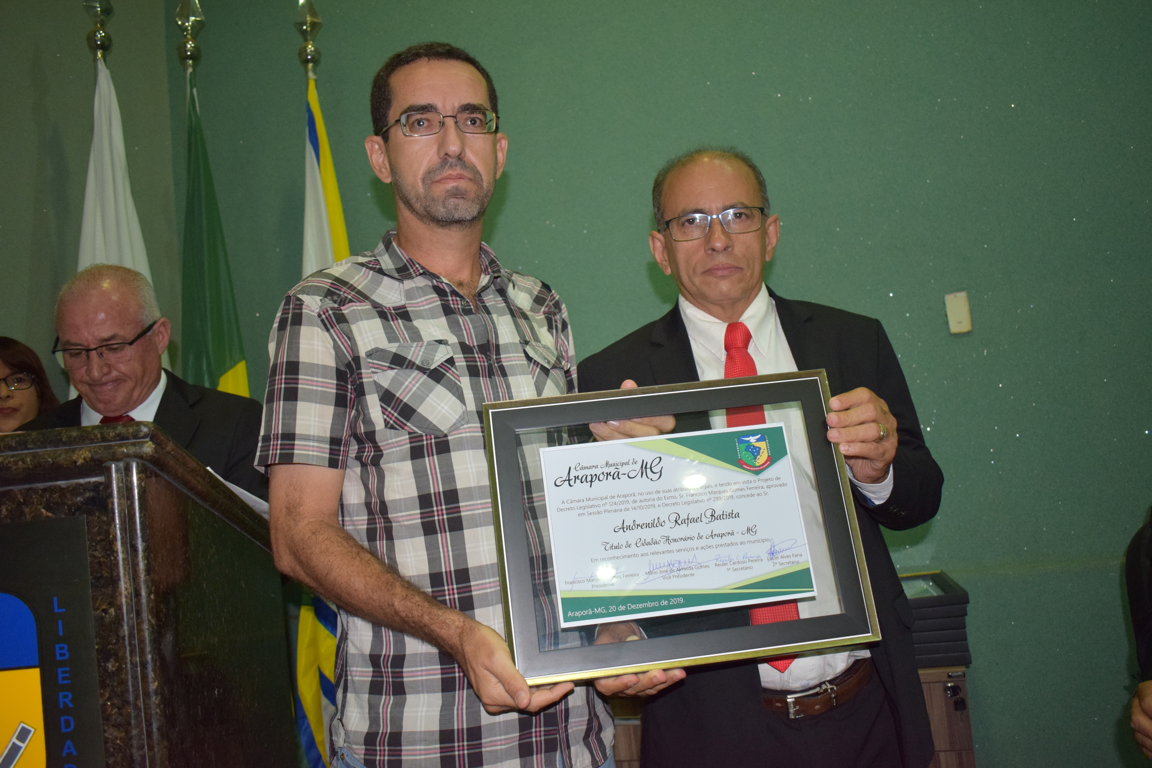 Sessão Solene Entrega de Título de Cidadão Honorário e Honra ao Mérito Araporã em 20/12/2019