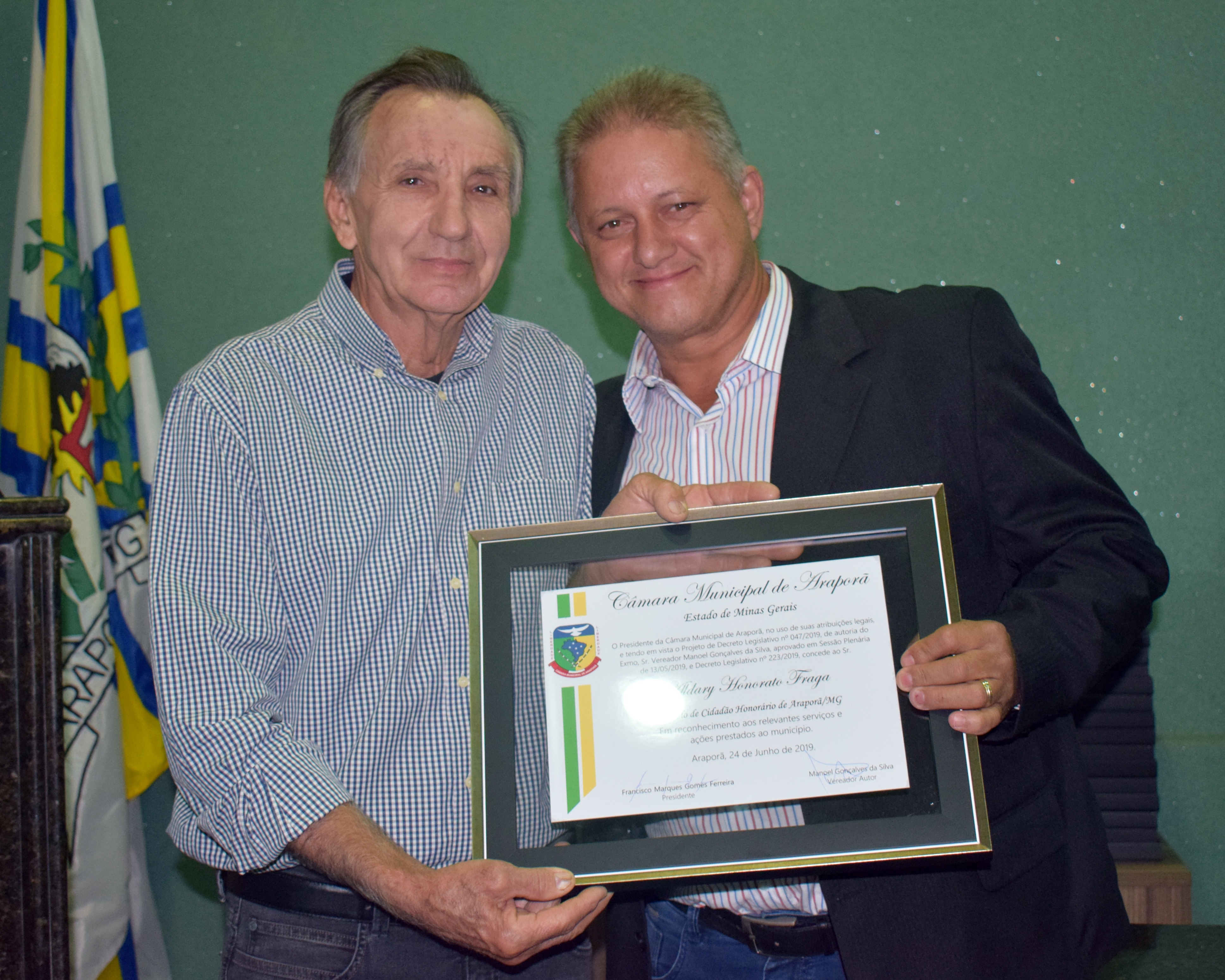 Entrega de Título Cidadão Honorário de Araporã-MG em 24/06/2019