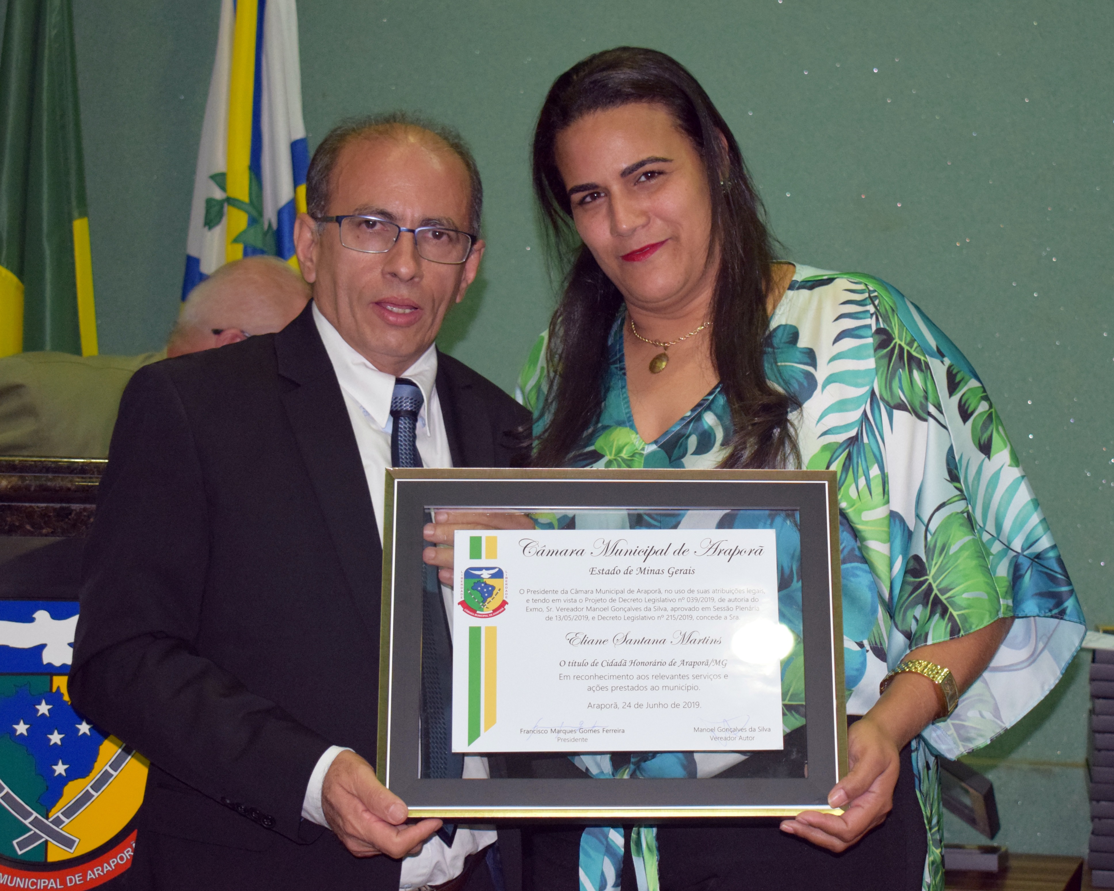 Entrega de Título Cidadão Honorário de Araporã-MG em 24/06/2019