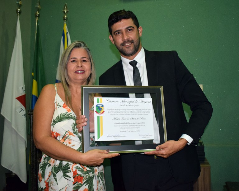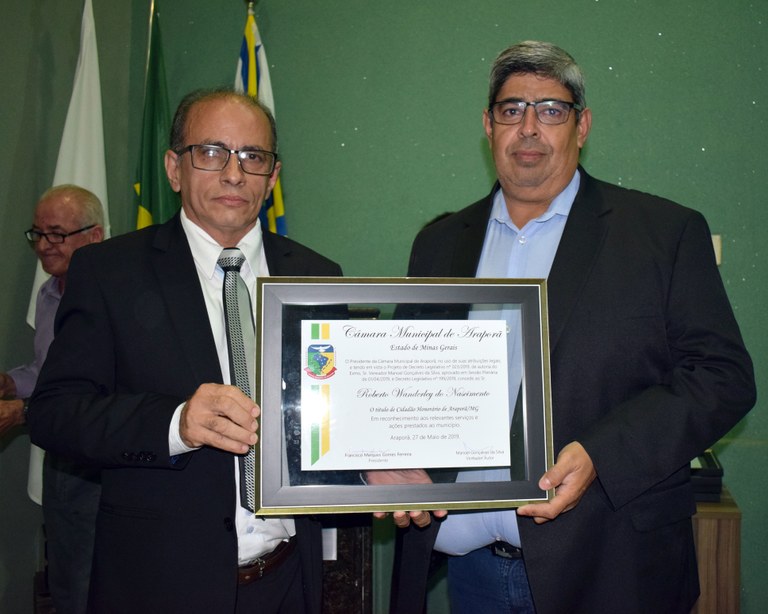 Entrega de Título de Cidadão Honorário de Araporã-MG., em 27/05/2019