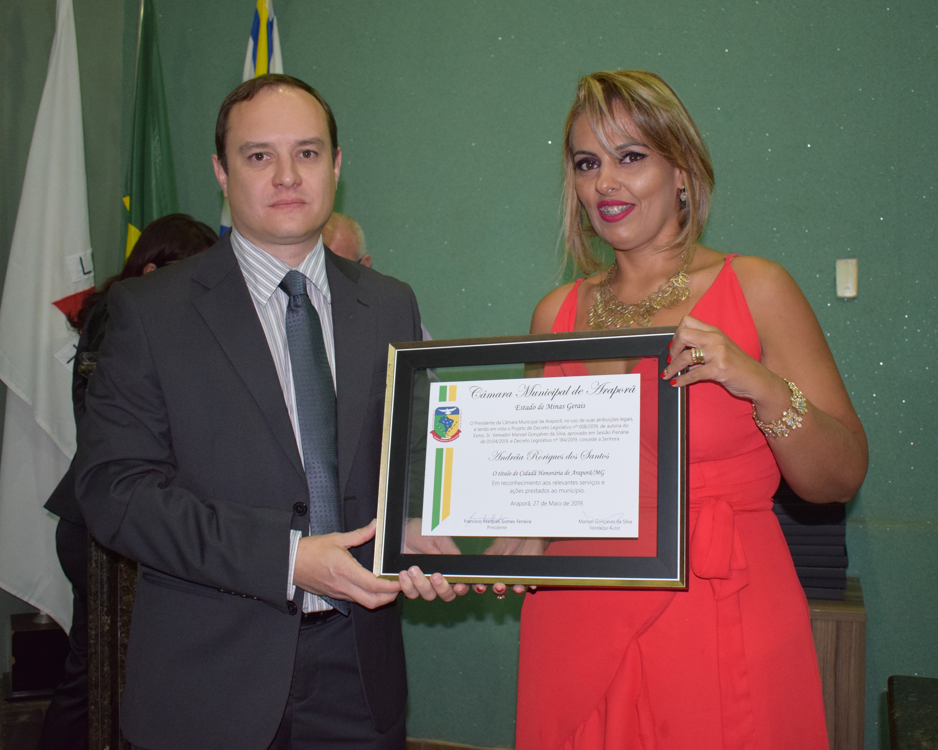 Entrega de Título de Cidadão Honorário de Araporã-MG., em 27/05/2019