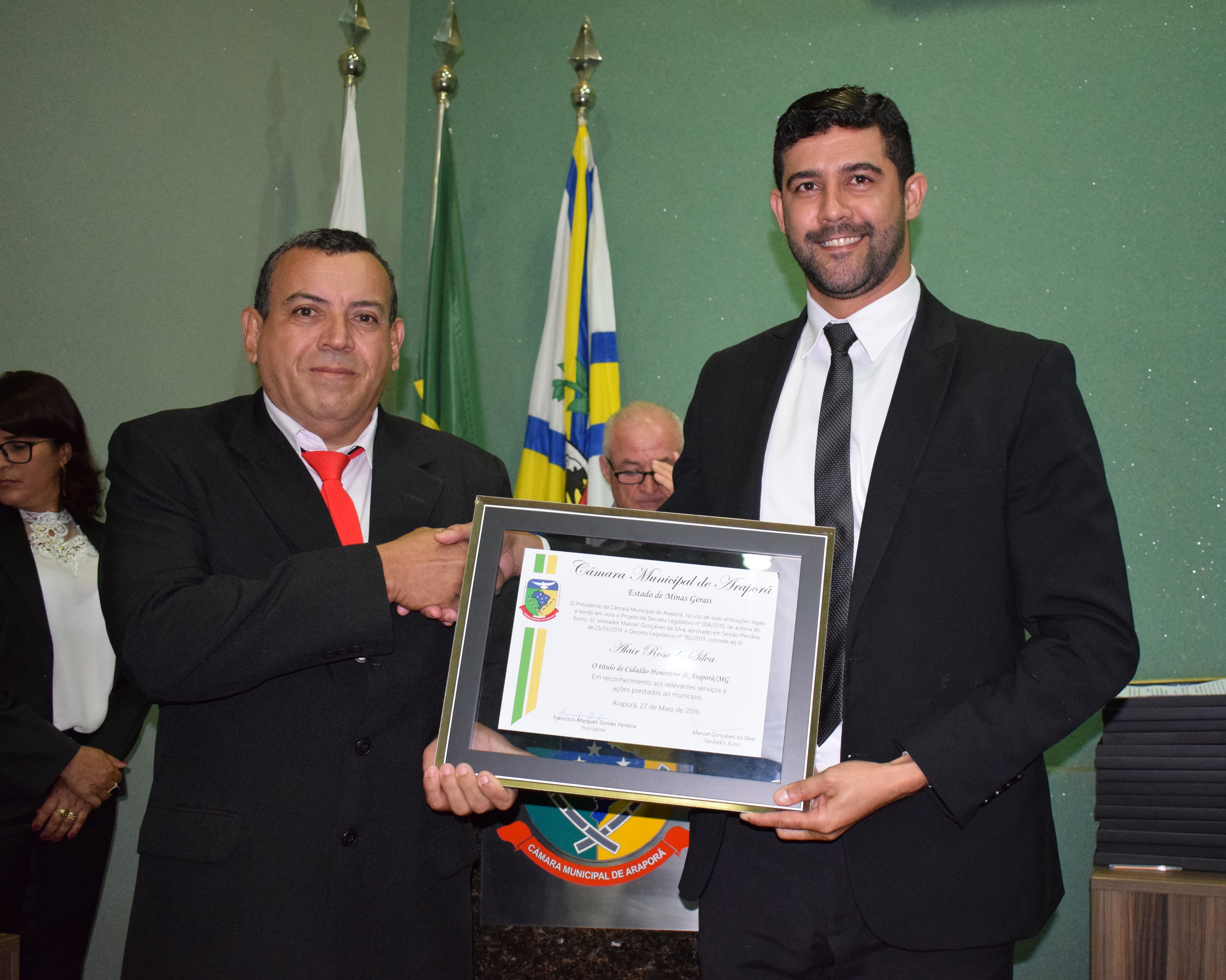 Entrega de Título de Cidadão Honorário de Araporã-MG., em 27/05/2019