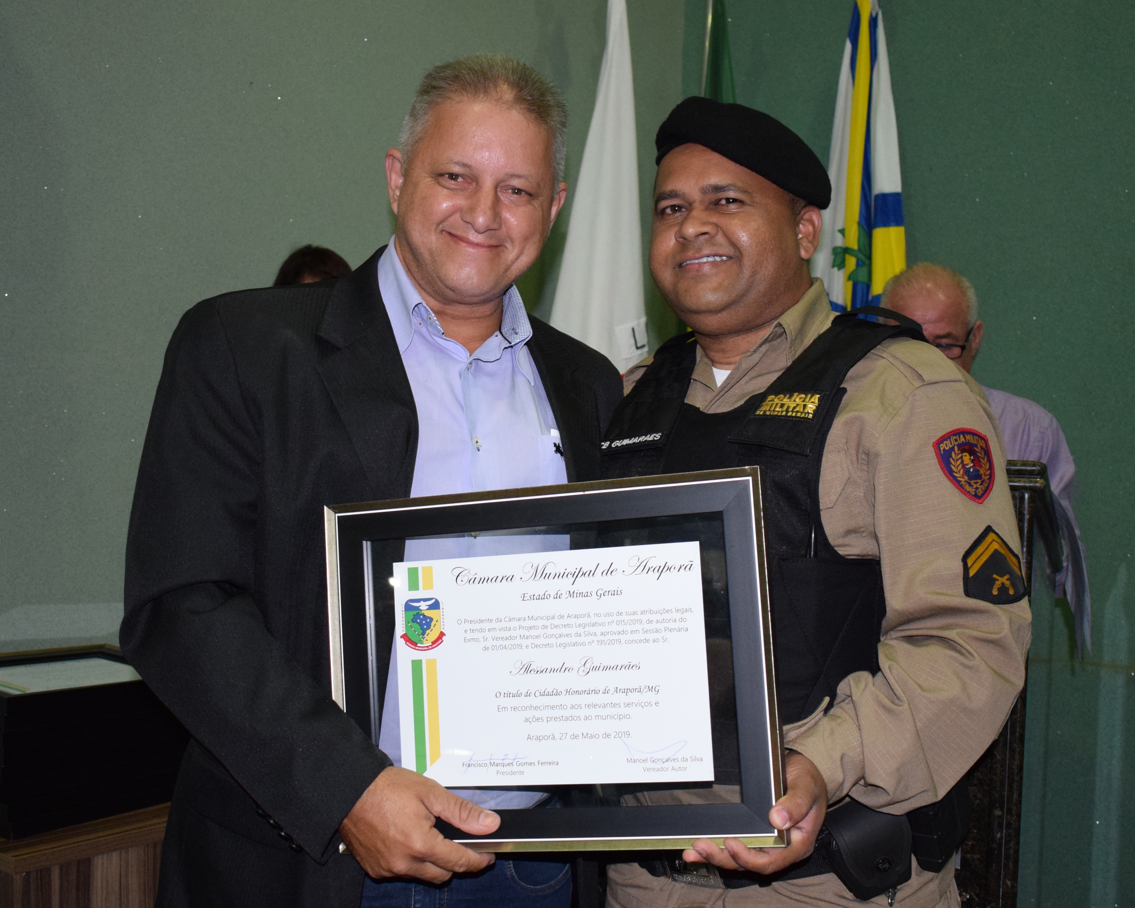 Entrega de Título de Cidadão Honorário de Araporã-MG., em 27/05/2019