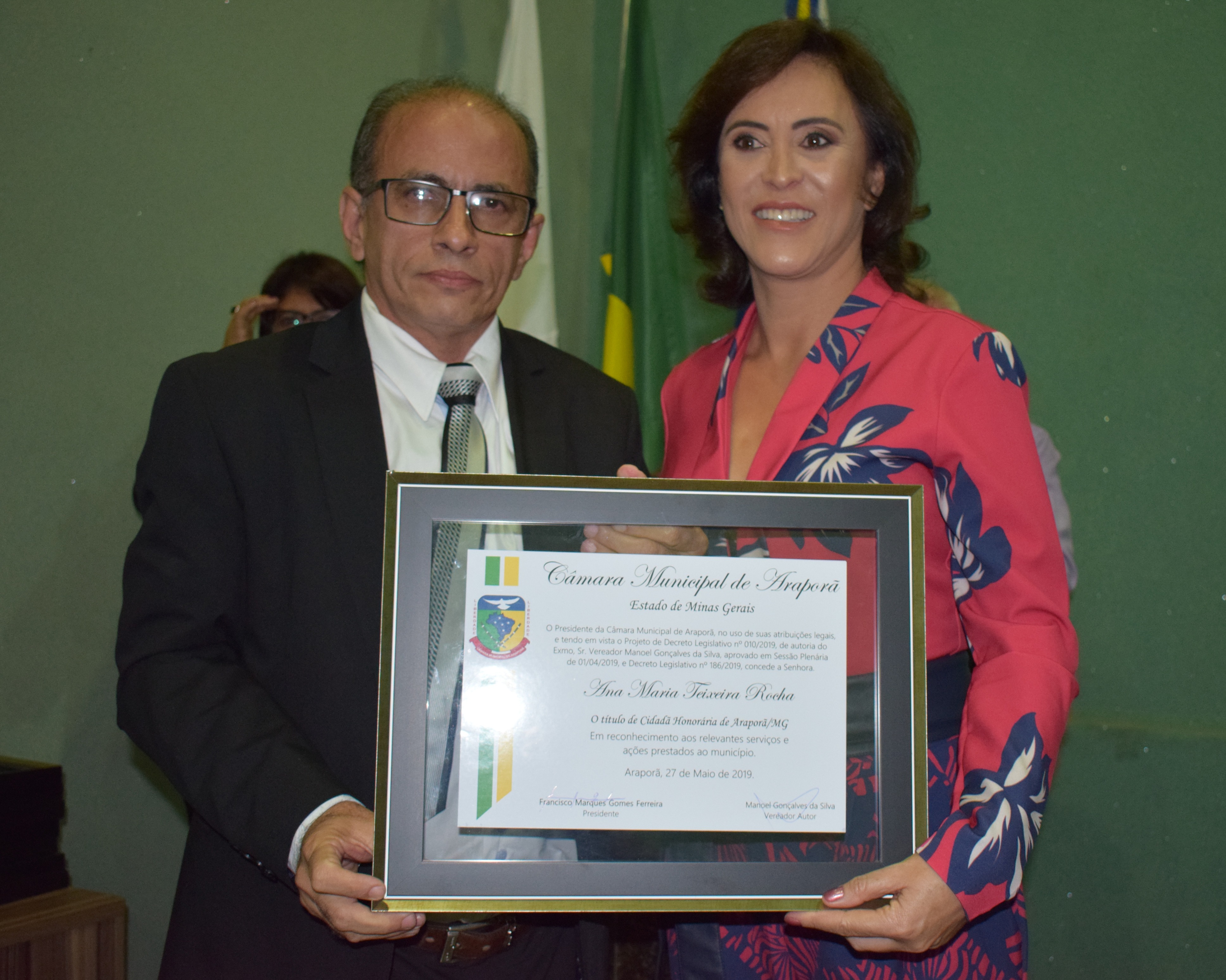 Entrega de Título de Cidadão Honorário de Araporã-MG., em 27/05/2019