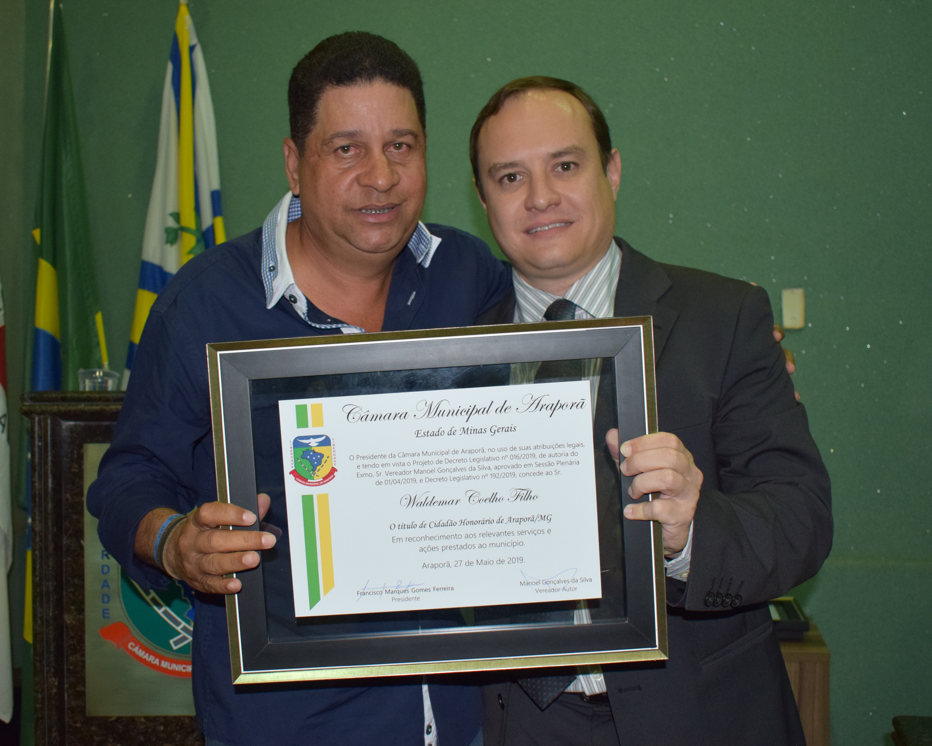 Entrega de Título de Cidadão Honorário de Araporã-MG., em 27/05/2019