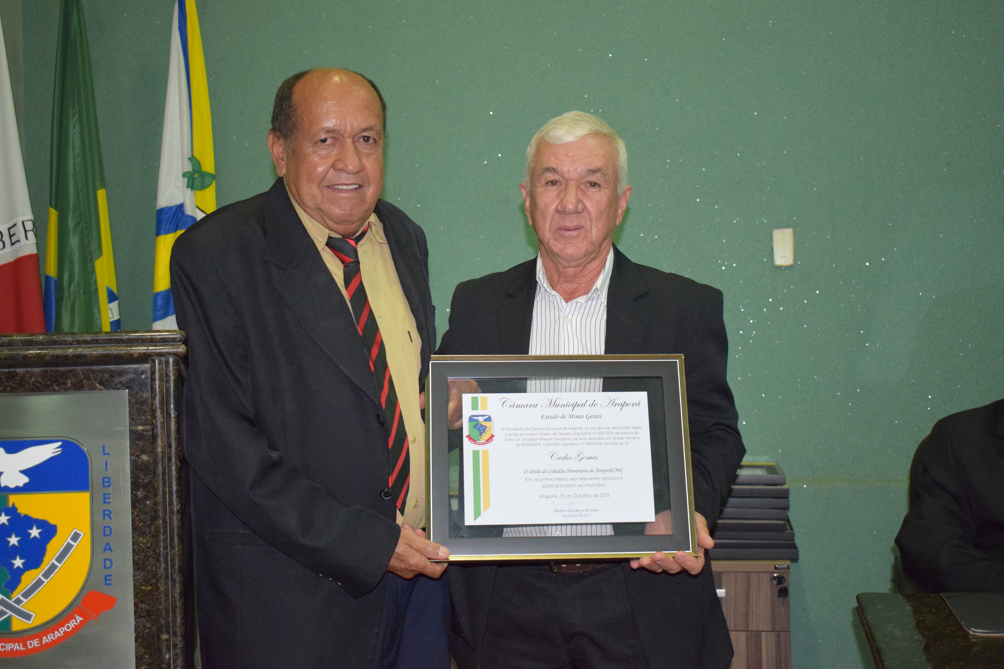 Entrega de Título Cidadão Honorário de Araporã-MG em 06/11/2019